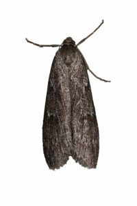 Het was op 2 maart zacht weer en in de nacht koelde het af van 11 naar 7 graden. In totaal zes macro soorten. Bosbesuil, Grote voorjaarspanner, Kleine voorjaarsuil, Tweestreepvoorjaarsuil, Voorjaarsboomspanner en Zwartvlekwinteruil. De laatste soort (Foto hieronder) heb ik vanaf 2019 nog maar een enkele keer waargenomen. Tot slot de Voorjaarsbladroller als enige micro soort.