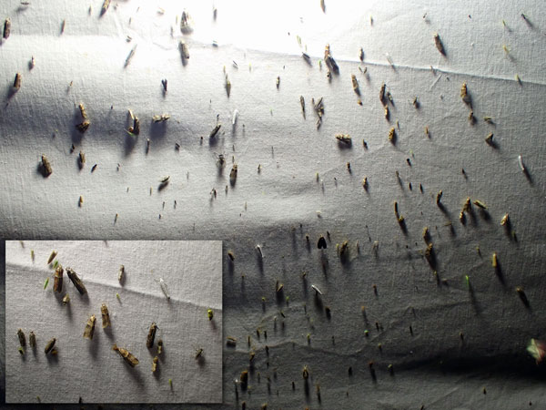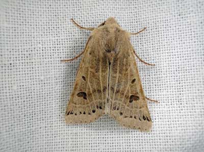 Ongeveer 13 graden en grotendeels bewolkt met weinig (westen) wind leverde redelijk wat nachtvlinders op. Veel Eikenuiltjes en maar liefst vier exemplaren van de Diana-uil! Verder een Saffraangouduil en Witstipgrasuilen. In totaal 9 soorten macro-nachtvlinders en één soort micro namelijk drie exemplaren van een Vuurmot. In totaal 26 exemplaren nachtvlinders. Geen nieuwe soorten voor de tuin, maar zeker een geslaagde avond voor deze tijd van het jaar.